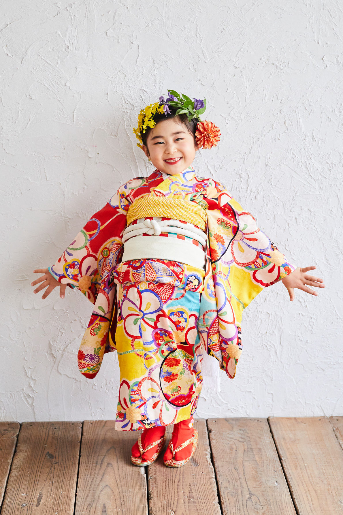お祝いの日にふさわしい、喜びと祝福に満ちた極彩の一着です。