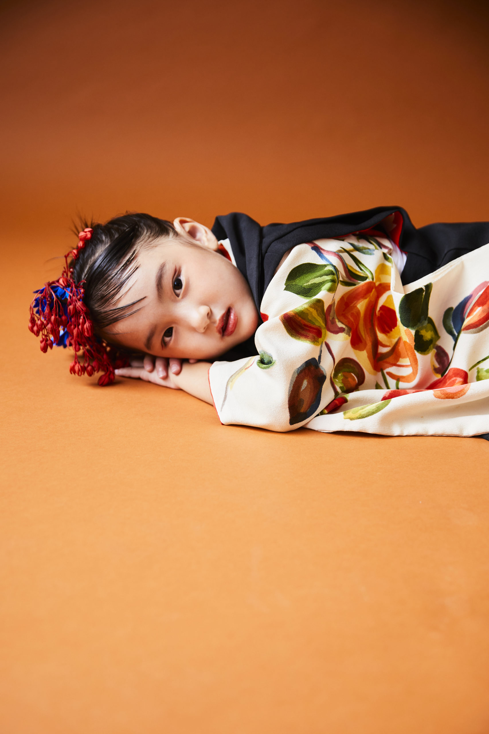 七五三や記念撮影、お正月などにもおすすめの、モダンで個性的な祝い着です。