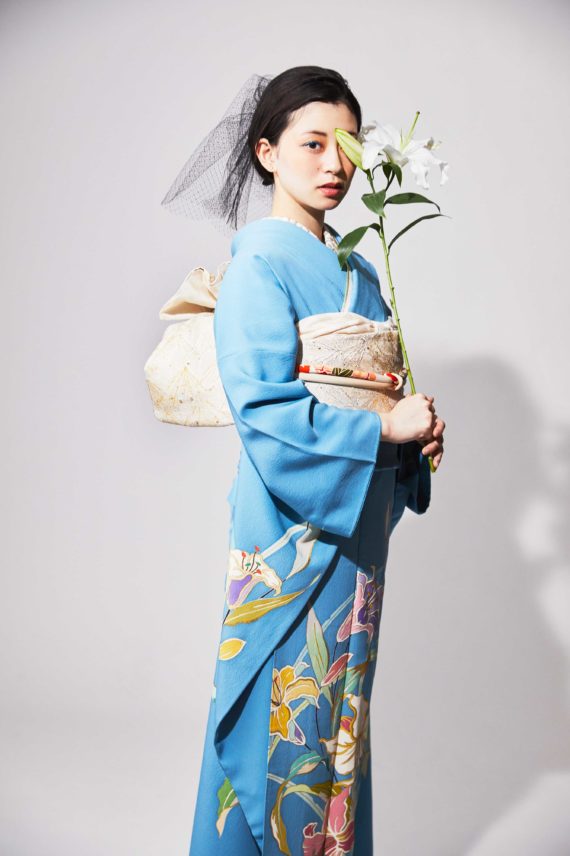 作家草野一騎の一つ紋百合文様振袖238,000円