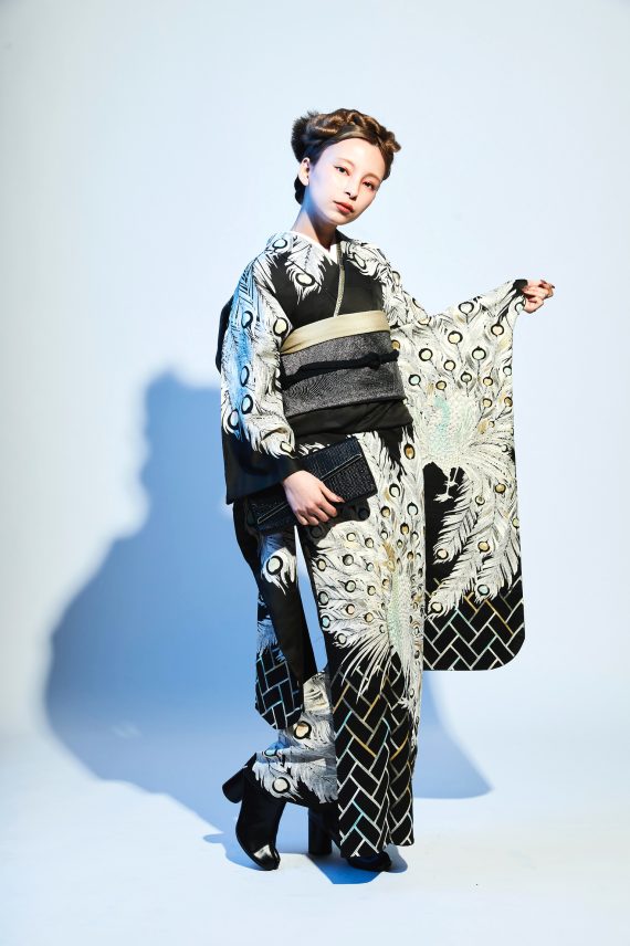 黒地に大胆な孔雀柄の豪華振袖238,000円